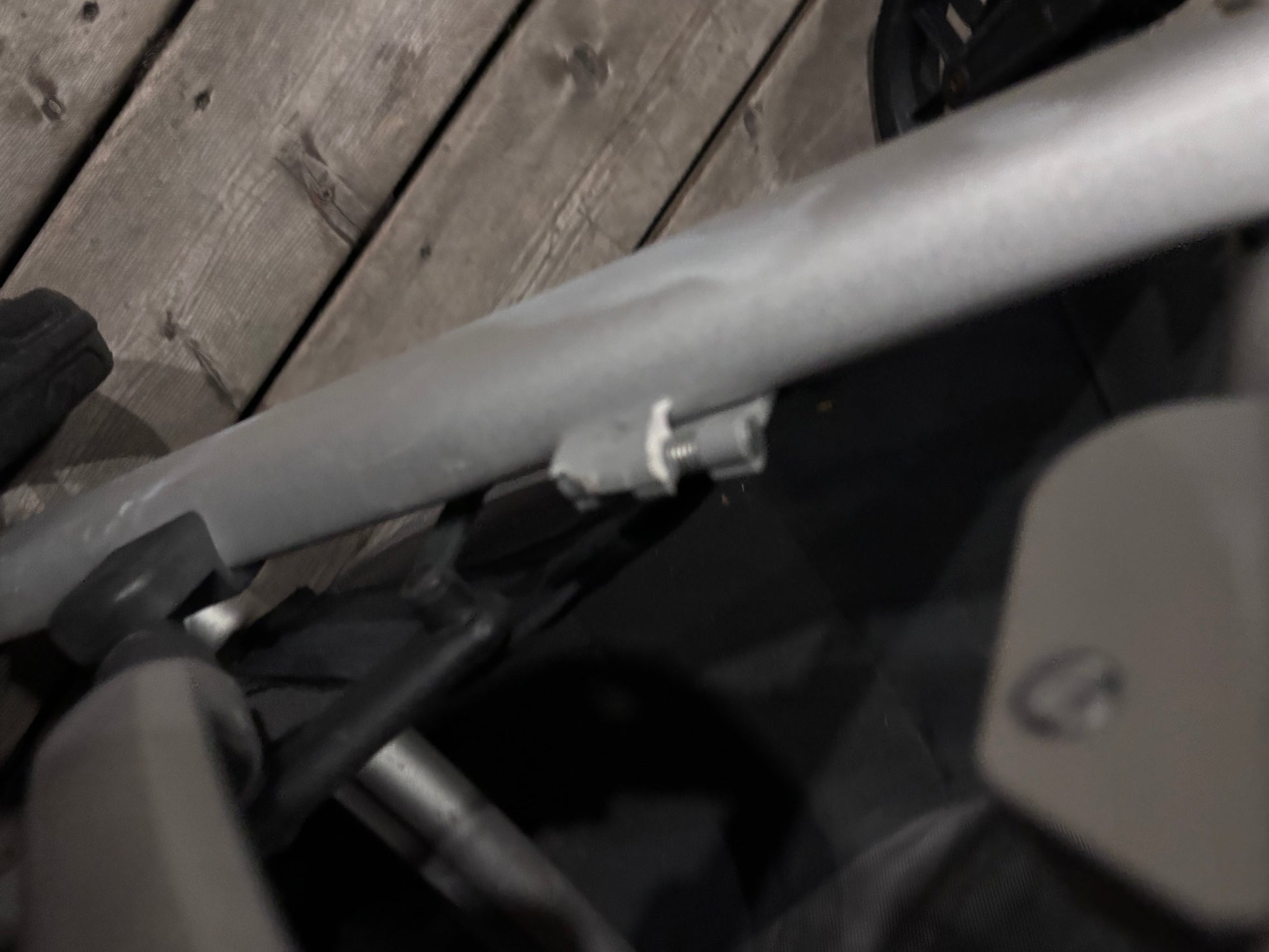 Description : bought in 2020 the handle bars did this very soon after i bought it.. used all the time so definielty a well loved stroller. some scuffs on the metal, no rips in mesh or seatbelts, has sun damage on the hood, comes with leather front bar(separate picture found in the Knick of time lol) ** my kids put dirt on it before i took the picture... will be nice and clean, like so clean, for pick up, if you noticed dirt. Ran out of sunlight to take pictures before cut off.... i procrastinated