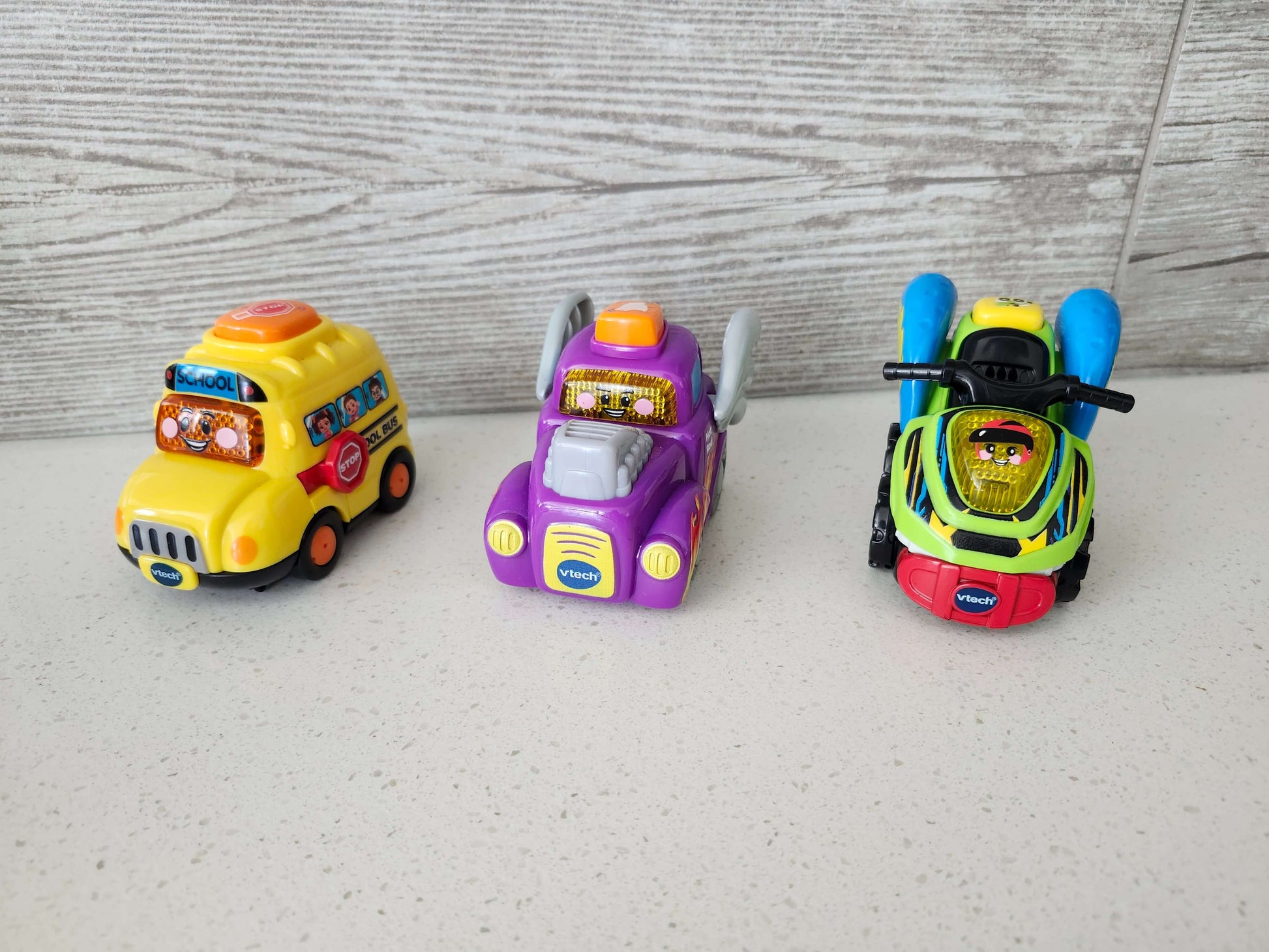 Description : Vtech Go! Go! Smart Wheels bundle of 3 vehicles. Includes school bus, hot rod, and ATV. VGUC- some scuffs on wheels of the ATV.