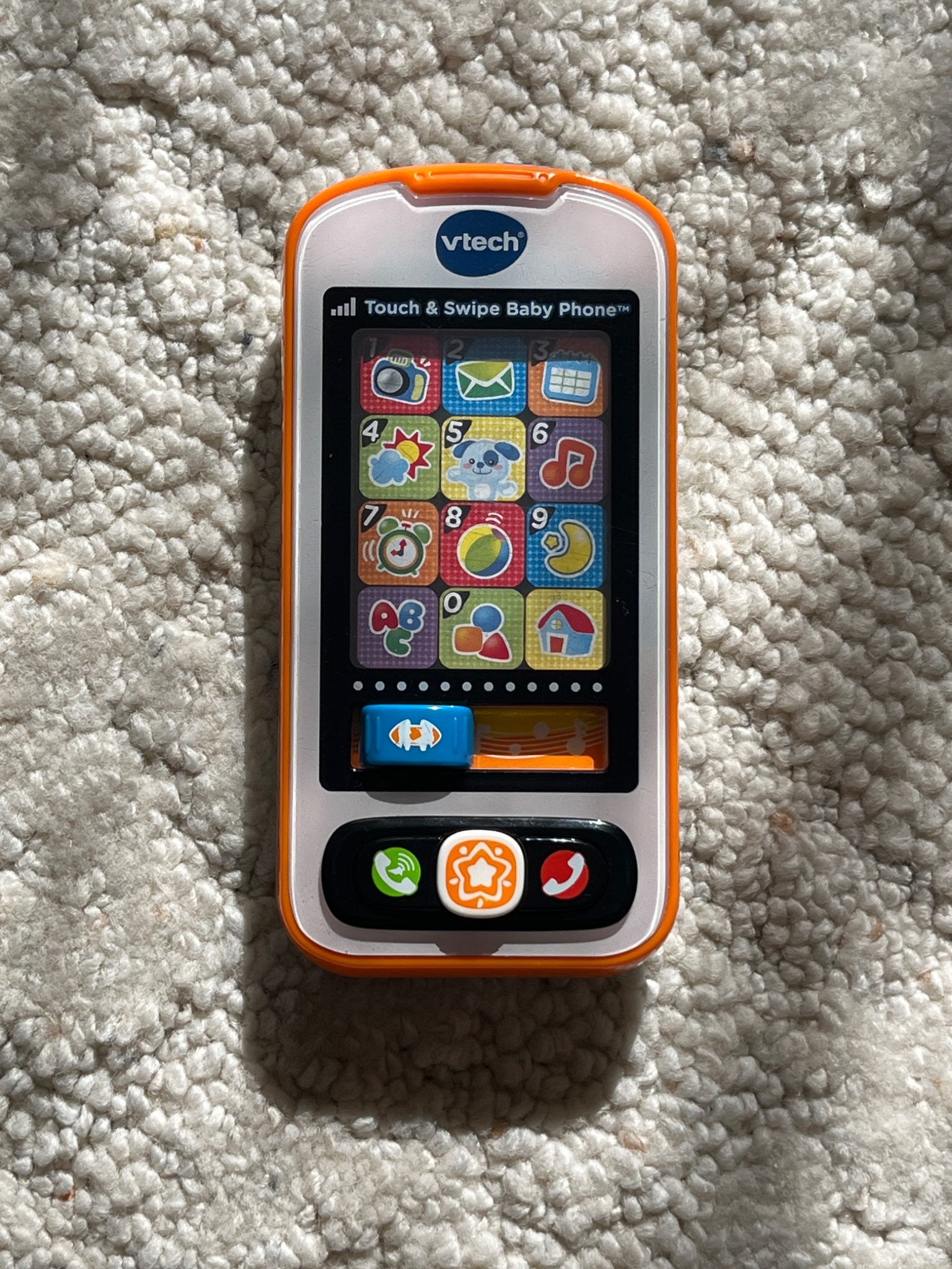 Description : Touch screen with 12 light-up, pretend apps 2-in-1 design features a switch to slide from app play to music mode Home Button saves your number so children can pretend to call home Pretend apps introduce role-play phrases and vocabulary 15 Playful melodies and sing-along songs keep little ones engaged Parent-friendly features include automatic shut off and personalization