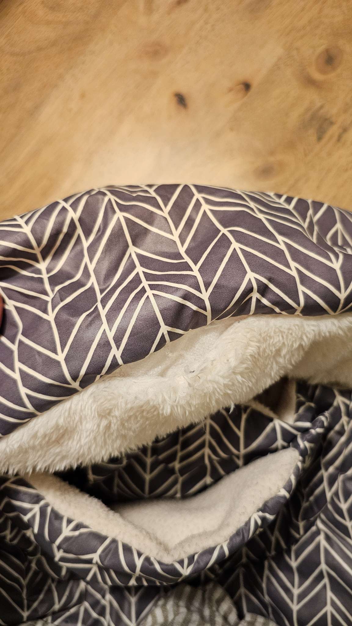 Small rip between fur and patterned fabric - see photo