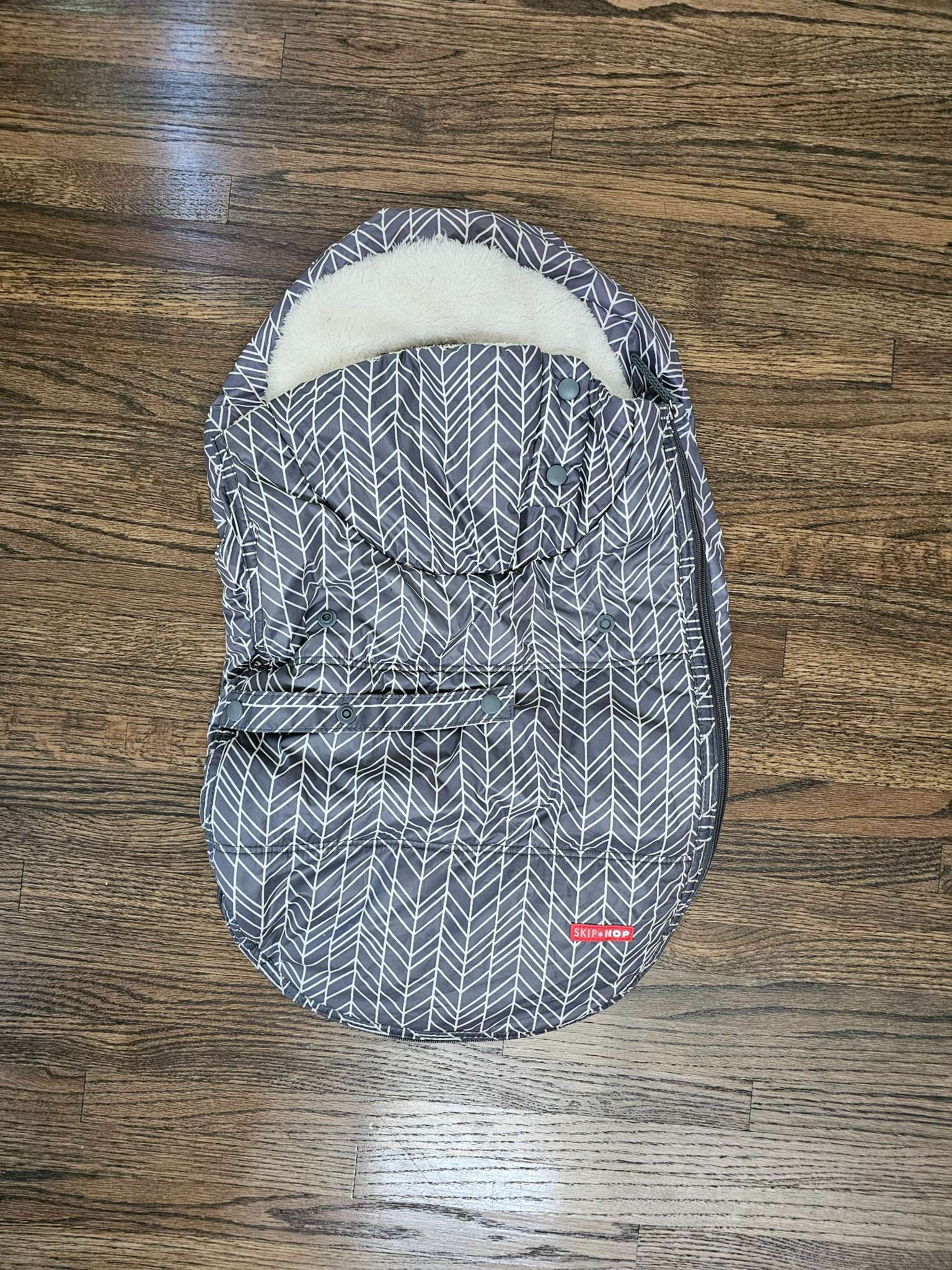Description : Baby car seat covers are the perfect accessory for cold weather travel with your little one. With elastic edges to secure around any car seat, Skip Hop's cozy cover frames baby’s head in plush fleece. Keep the collar closed to block out cold wind, or flip it open and snap it to the outer layer for instant temperature control. The roll-away front flap offers easy access to baby and zips off for full access.