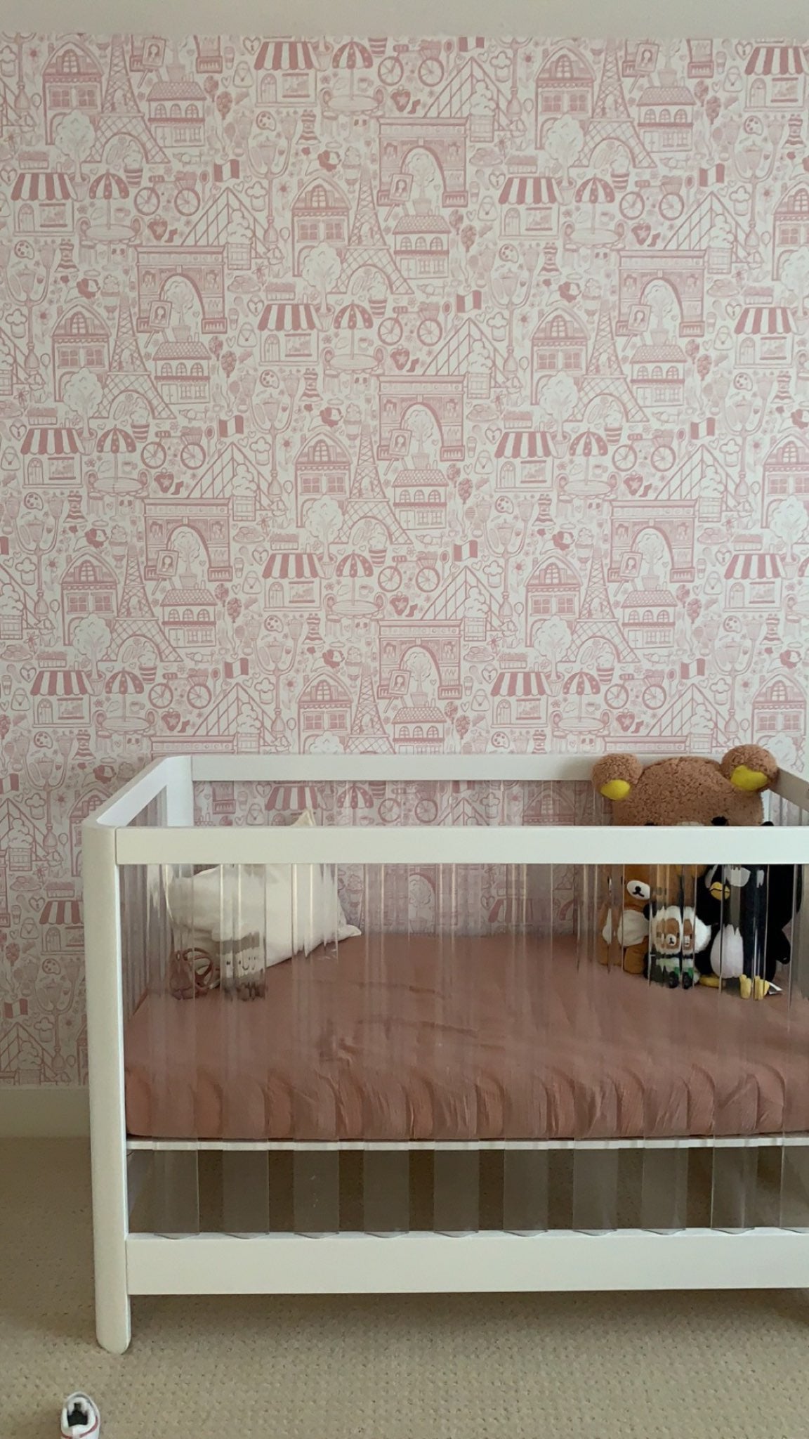 Description : Spot On Reverie Crib Purchased from West Coast Kids. Mattress can be placed at 3 heights and it converts from baby crib to a toddler bed by removing one side. Mattress not included.