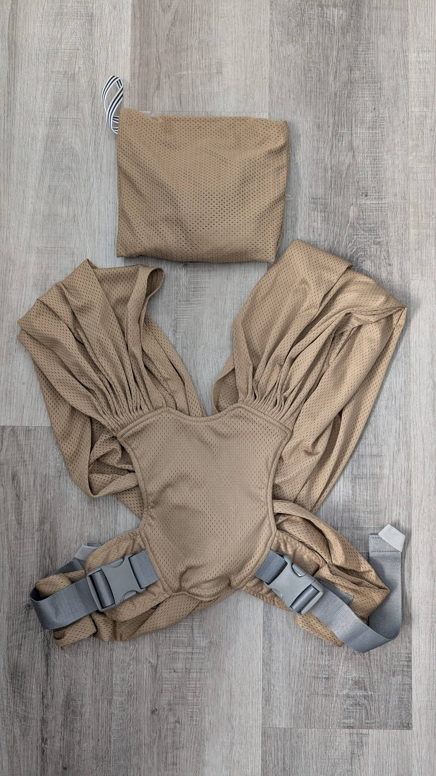 Description : Wrap style carrier that folds up into itself to a small bag. Handy to put in the diaper bag. Like New, bought it brand new but barely used