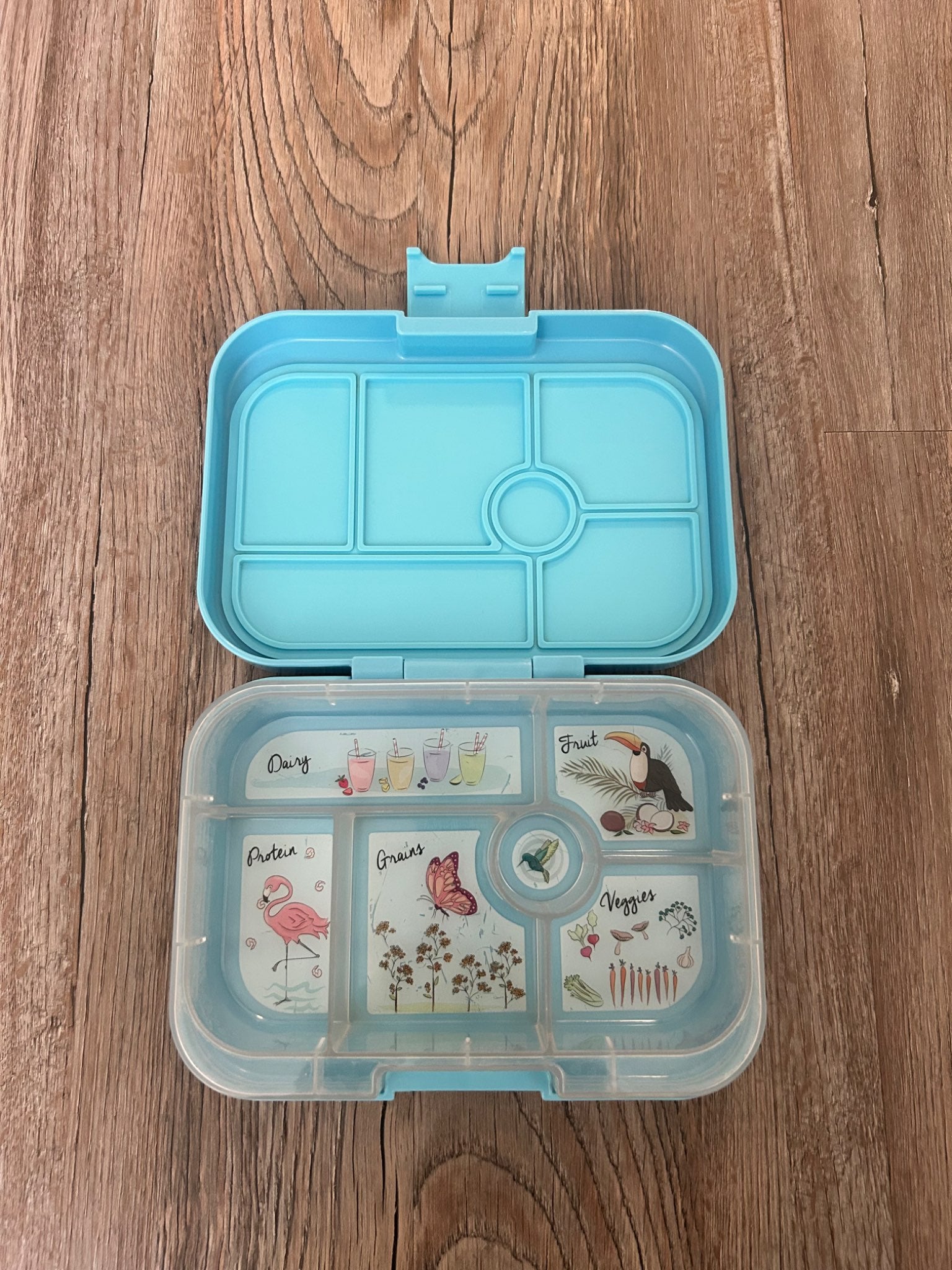 Description : Yumbox Original 6 Compartment Bento Box Rubber seal never submerged Outer shell has never been in dishwasher Some wear on pictures inside compartments as shown Latch and seal are still fully functioning as new. Great used condition! The 6-compartment tray makes it easy to pack balanced, colorful meals that even picky eaters will love. Ideal for toddlers and kids ages 2–7. Dimensions: 8.5"(L) x 6"(W) x 1.8"(H). Retails for $40+