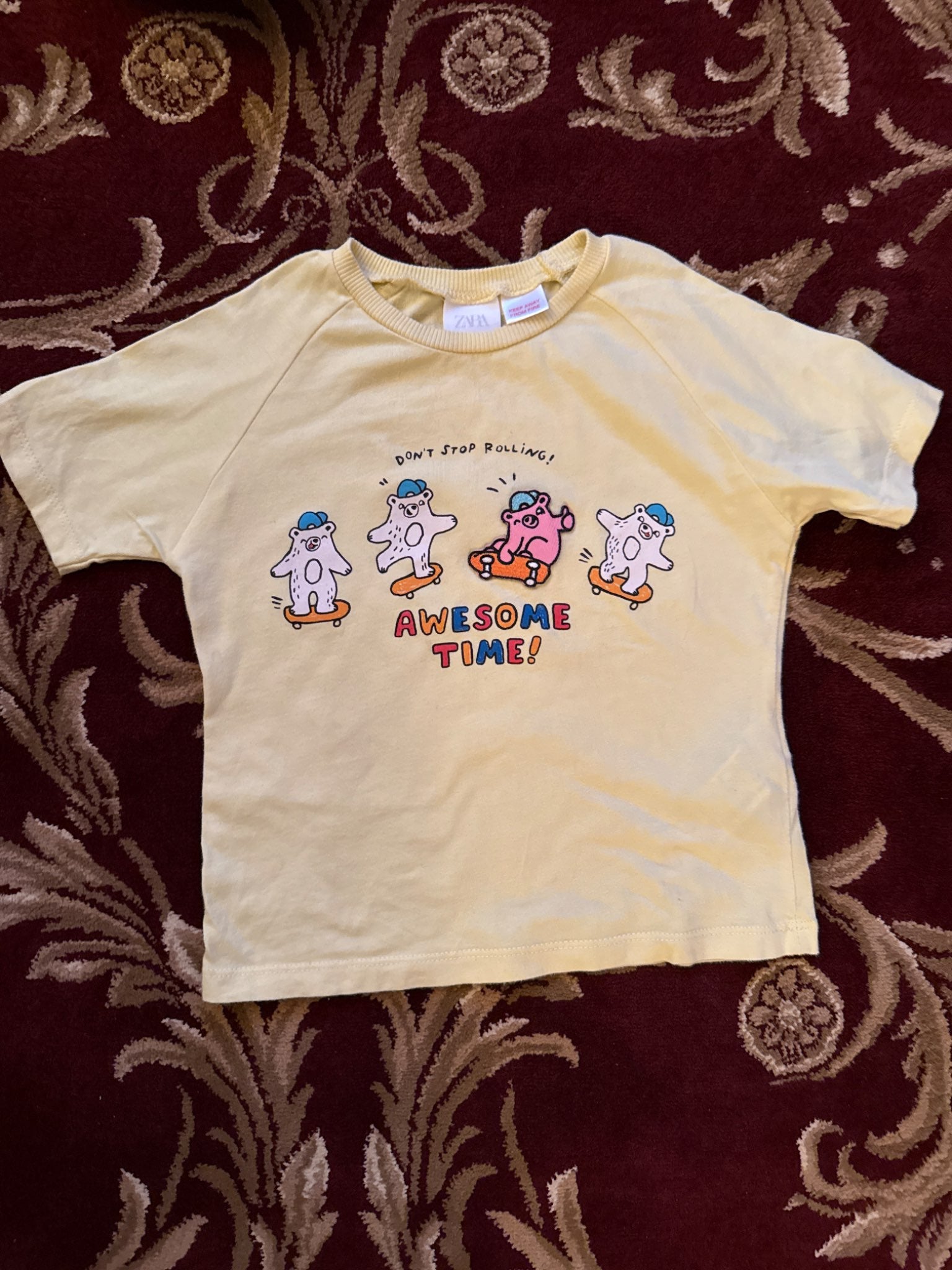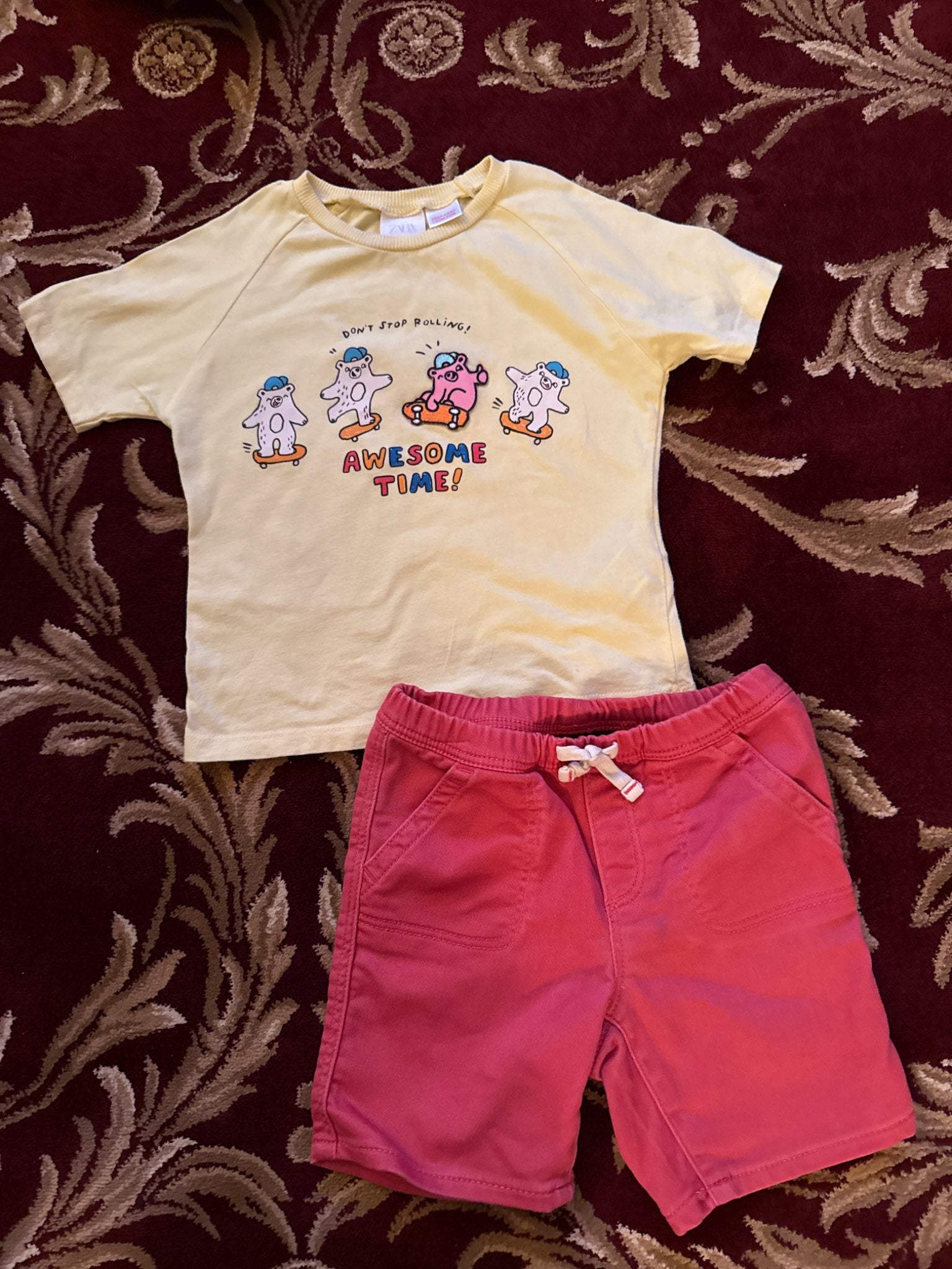 Zara size 18 - 24 m yellow shirt + pink red short, Kids 24 Month (18-24M)